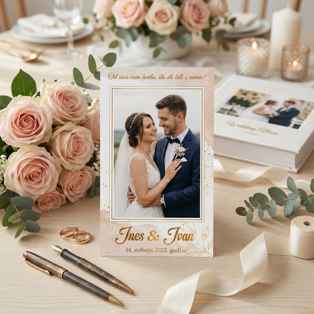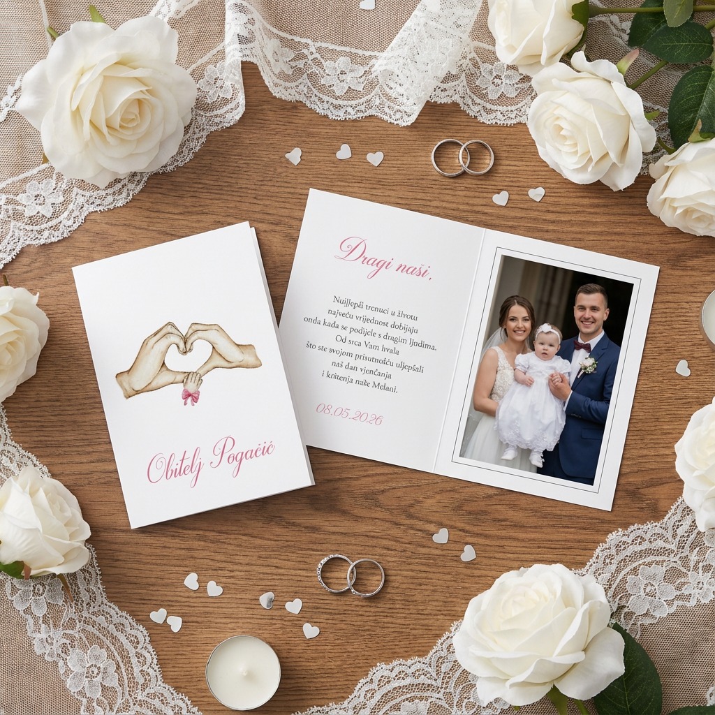 Zahvalnice radimo u dizajnu po želji, a najčešće u kompletu sa pozivnicama.